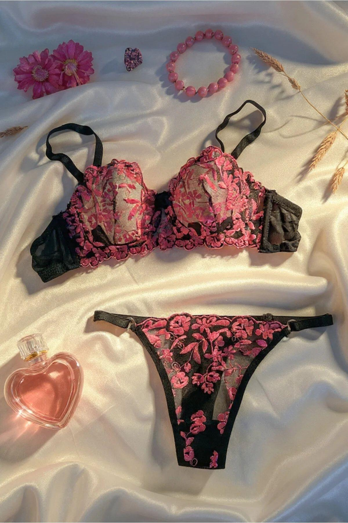 Bella Notte Siyah Kaplı Güpürlü Sütyen Takımı 19032