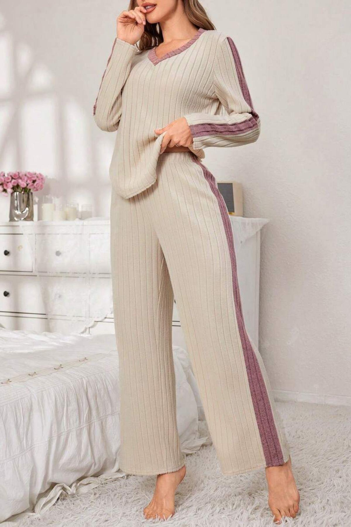 Bella Notte Bej Pamuklu V Yaka Pijama Takımı 77163