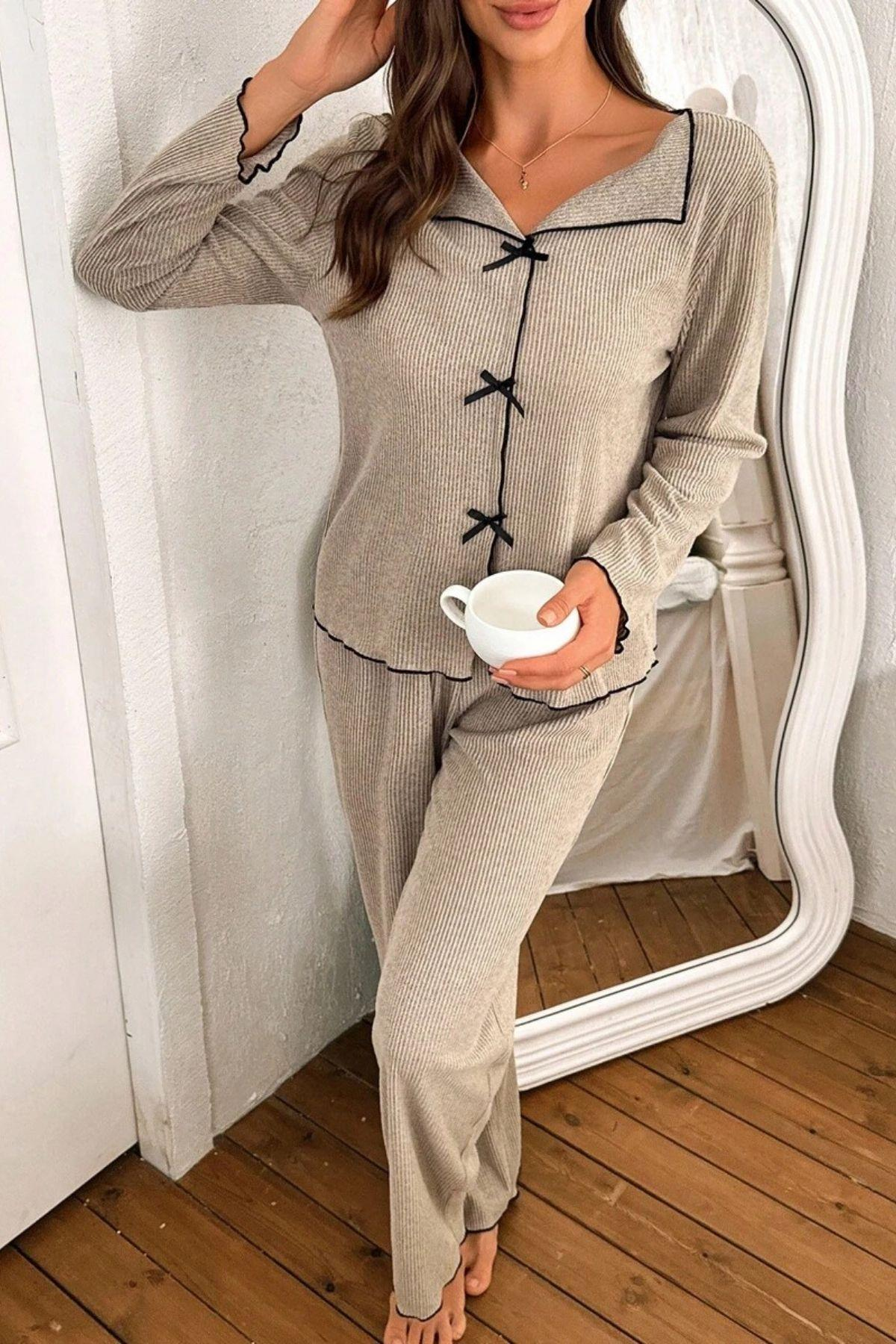 Bella Notte Vizon Pamuklu Fiyonk Detaylı Pijama Takımı 77305 (77305.57.S)